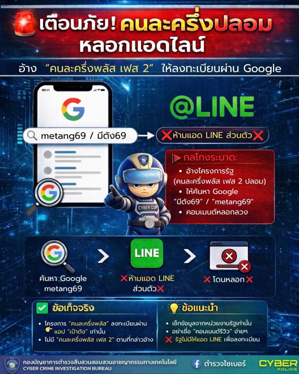 #ตำรวจไซเบอร์ #cyberpolice #เตือนภัยออนไลน์ #มิจฉาชีพ #คนละครึ่งปลอม
