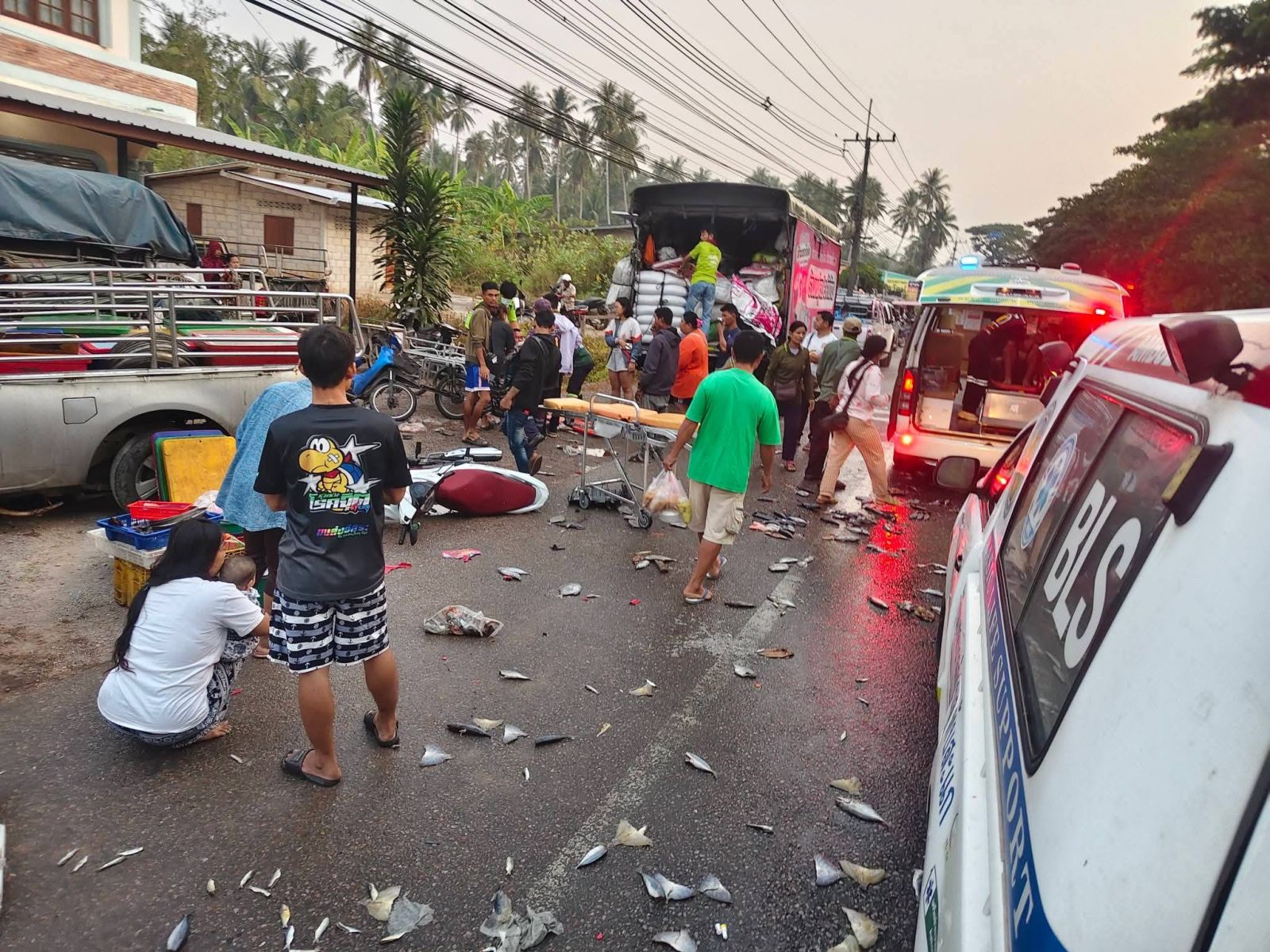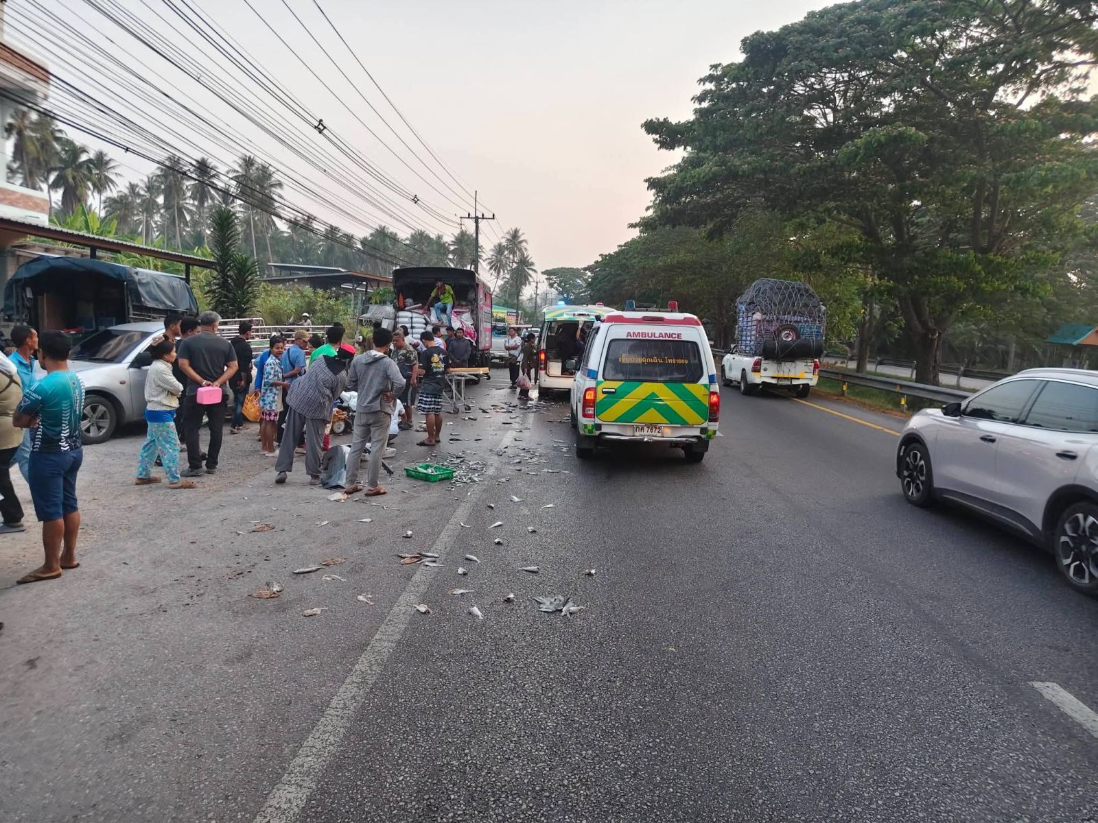 อุบัติเหตุ หน้าตลาดนัดอ่างทอง อ.ทับสะแก จ.ประจวบคีรีขันธ์ รถกระบะตู้ทึบ ชนกับรถกระบะบรรทุกปลา และชนคนเดินเท้า มีผู้ได้รับบาดเจ็บทั้งหมด 3 ราย และในที่เกิดเหตุมีปลาหล่นบนพื้นถนนจำนวนมาก ขณะนี้อยู่ระหว่างดำเนินการ