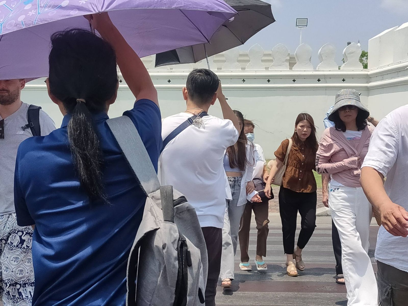 ท่ามกลางแสงแดดที่แผดเผา หลายคนต้องสวมหมวก กางร่ม และพกพัดลมขนาดเล็ก