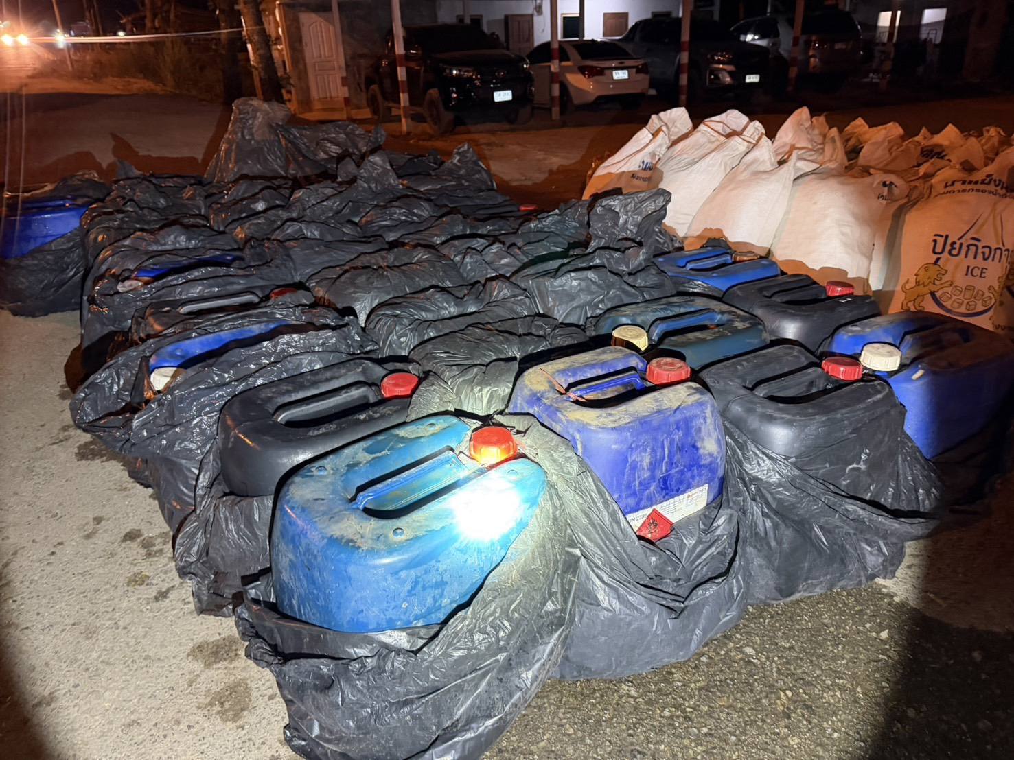 รวบชายไทย ซุกน้ำมัน 1,260 ลิตร ท้ายรถกระบะขนน้ำแข็ง เตรียมส่งออกขายฝั่งเมียนมาลิตรละ 100 บาท
