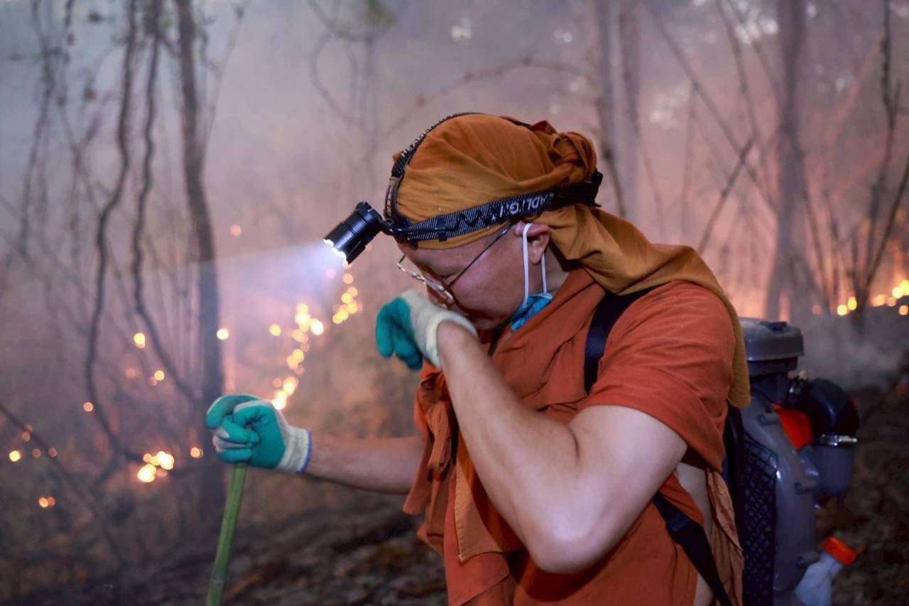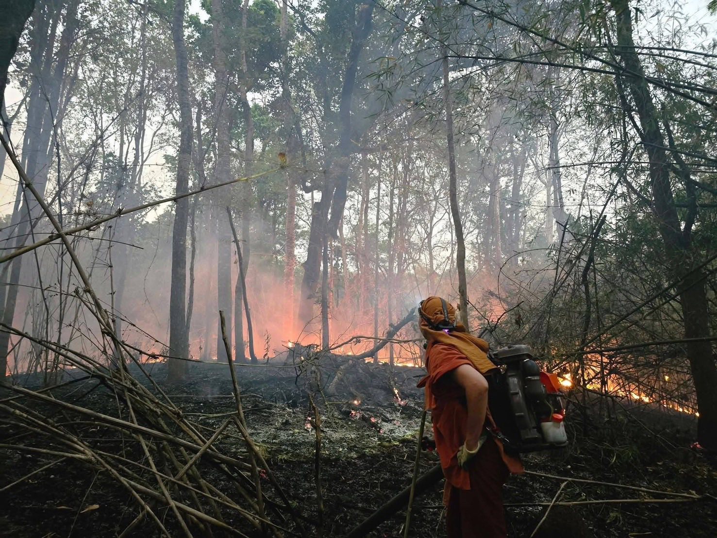 พระครูอ๊อดระบุว่า “เจ็บปวดใจที่รักษาป่าผืนนี้ไม่ได้ ตอนนี้กำลังออกจากพื้นที่ไฟป่า” ภายหลังลงพื้นที่ตั้งแต่ช่วงบ่าย ร่วมกับทีม มูลนิธิเพชรเกษม จิตอาสา ผู้นำชุมชน และเจ้าหน้าที่ เร่งควบคุมเพลิงที่โหมไหม้ในเขตบ้านแม่เตาดิน ตำบลห้วยแก้ว