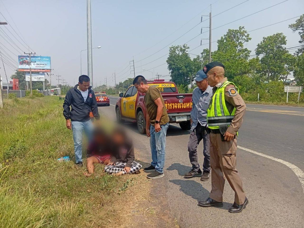 ต่อมาศูนย์วิทยุ 1193 กระจายข่าวให้ตำรวจทางหลวง ช่วยสกัดจับคนร้าย โดยตำรวจทางหลวงอุบลฯ ได้ตรวจสอบเส้นทางหลบหนีจากกล้องวงจรปิด พบว่าคนร้ายกำลังขับรถกระบะคันดังกล่าวหลบหนี มุ่งหน้าสู่พื้นที่ภาคอีสานตอนล่าง โดยใช้เส้นทางถนนทางหลวงหมายเลข 24 จนกระทั่งพบรถขับหนีออก อ.เดชอุดม จ.อุบลราชธานี ซึ่งเป็นเส้นทางที่สามารถทะลุออกสู่ชายแดนประเทศเพื่อนบ้านได้ เจ้าหน้าที่ไล่ล่าและหยุดยั้งรถคนร้ายได้ เพราะเสียหลักพุ่งตกลงไปข้างทาง บริเวณพื้นที่ ทล.24 กม.384