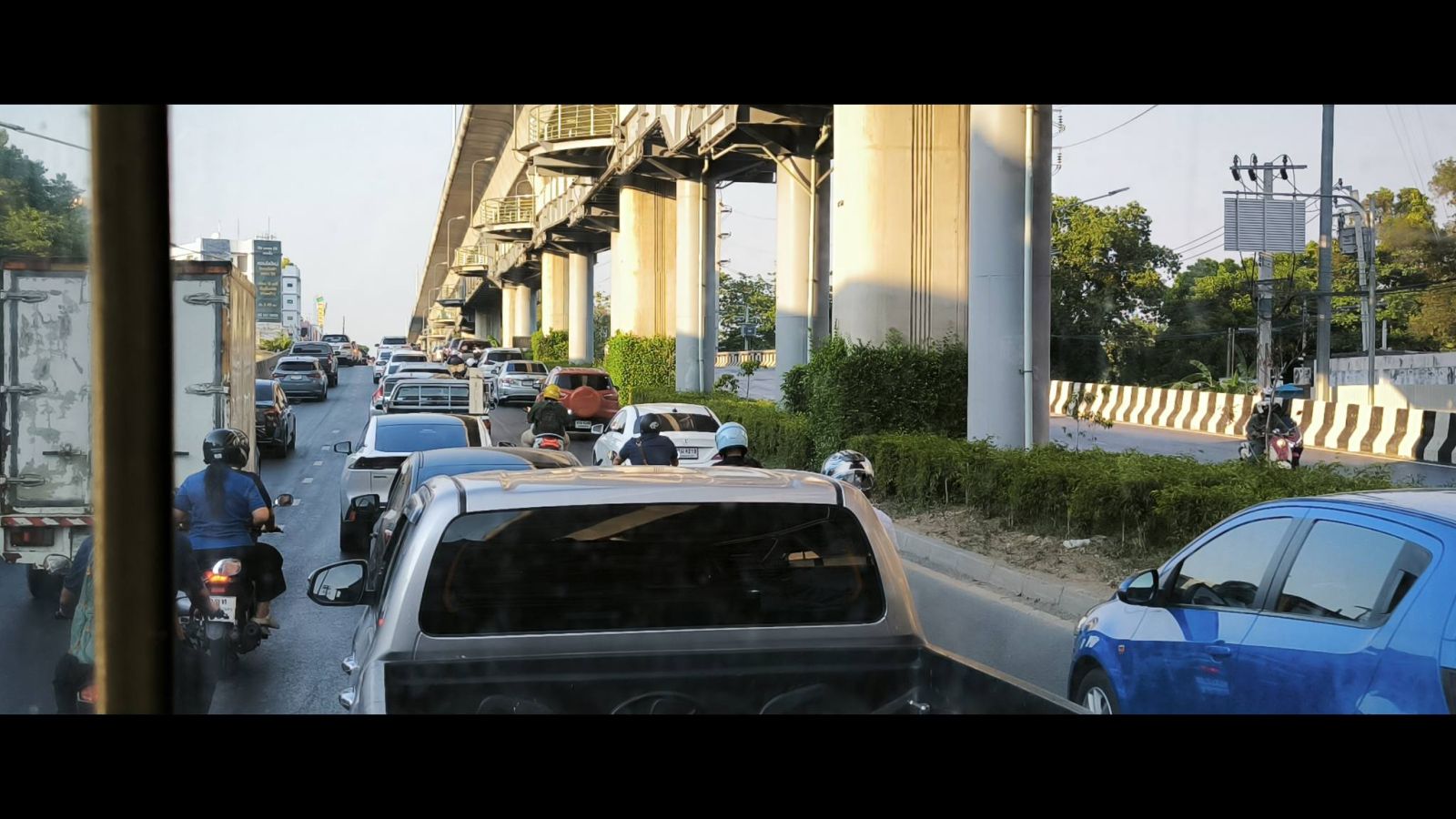 รายงานจราจร เวลา 17.45 น. ถนนพหลโยธิน ฝั่งขาออก จากแยกเกษตร มุ่งหน้าวงเวียนบางเขน ช่วงแถวสะพานข้ามคลองบางบัว การจราจรเย็นนี้หนาแน่น เคลื่อนตัวช้า