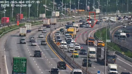 ก่อนหน้านี้ ช่วง 09.45 น. มอเตอร์เวย์ (ทล.7) มุ่งหน้าบ้านฉาง มีอุบัติเหตุ ชนท้ายกัน 6 คัน ขวางเลนขวา ท้ายแถวสะสมประมาณ 3 กม. และบริเวณ กม.83+500 มีงานซ่อมผิวการจราจร ปิด 1 ช่องทางซ้าย