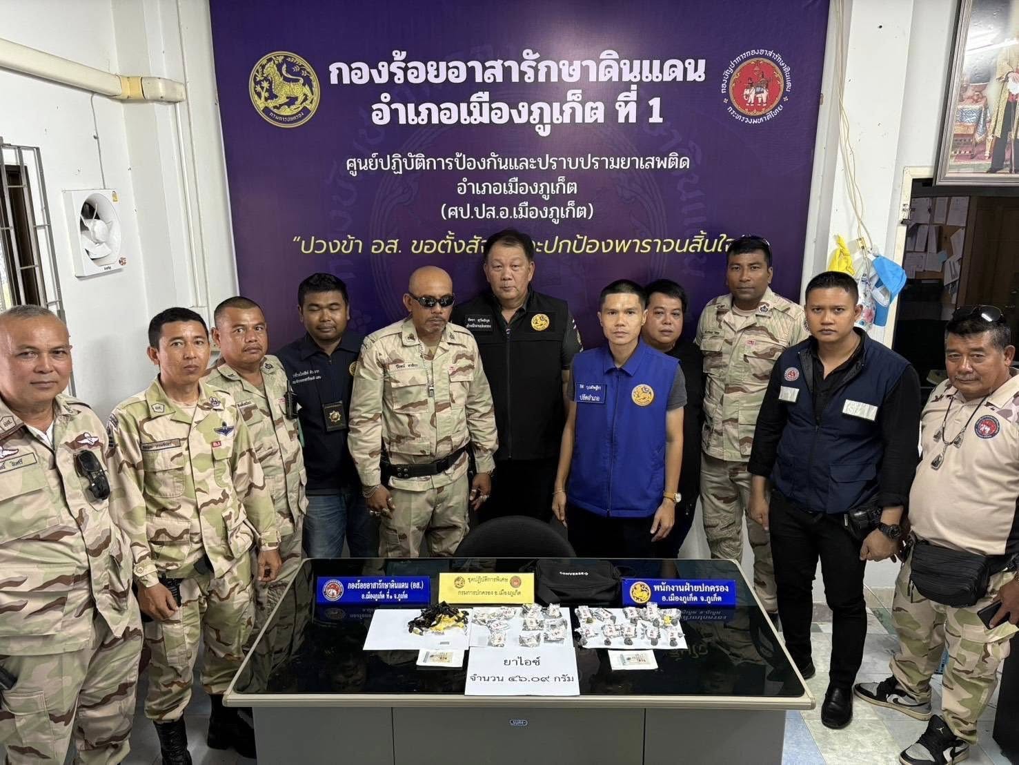 นำโดย นายดนัย สุขสกุล ป้องกันจังหวัดภูเก็ต , นายธิติ บุณยัษเฐียร ปลัดอำเภอเมืองภูเก็ต , นายธงไชย รัตนเดช และนายปัญจพงศ์ บุญจันทร์ ผู้ช่วยป้องกันจังหวัดภูเก็ต ร่วมกับ เจ้าหน้าที่ศูนย์ดำรงธรรมจังหวัด , ตำรวจ ตม.ภูเก็ต , สสจ. , พาณิชย์จังหวัด และ สรรพากรพื้นที่ภูเก็ต พร้อมด้วยสมาชิก อส. ร้อย อส.อ.เมืองภูเก็ต ที่ 1 และ ร้อย บก.บร.อส.จ.ภูเก็ต