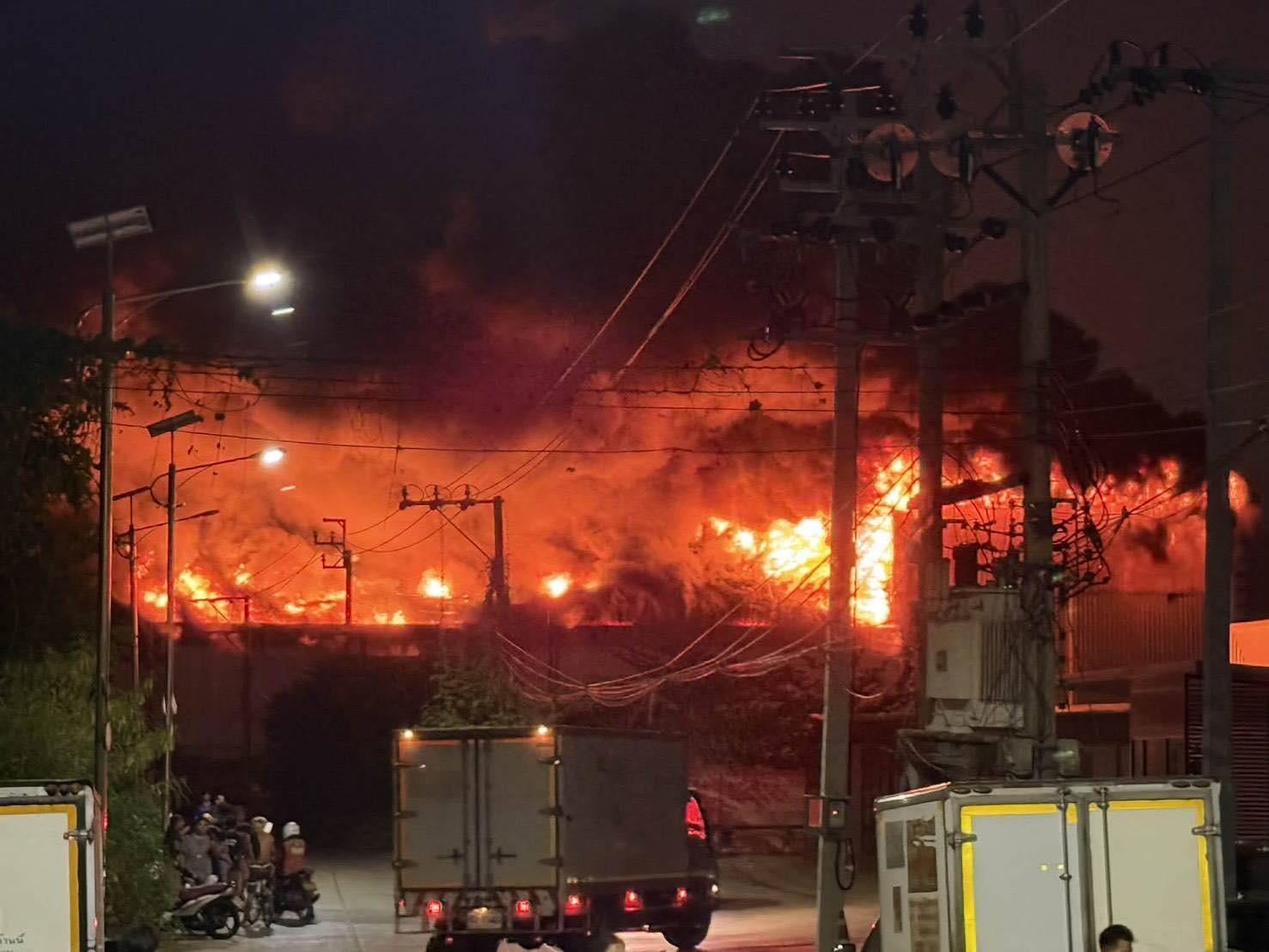 ที่เกิดเหตุเป็นโกดังผลิตเกี่ยวกับโฟมขนาดใหญ่ บนเนื้อที่ประมาณ 5 ไร่ เป็นลักษณะโกดังชั้นเดียว ปลูกติดกันสองโกดัง โดยต้นเพลิงเกิดขึ้นภายในโกดังของโรงงาน จากนั้นลุกลามอย่างรวดเร็ว เนื่องจากมีเม็ดโฟมกล่องโฟมจำนวนมากด้านใน เจ้าหน้าที่ต้องระดมรถดับเพลิง และหน่วยบรรเทาสาธารณภัยจำนวนมกา เข้าระงับเหตุ