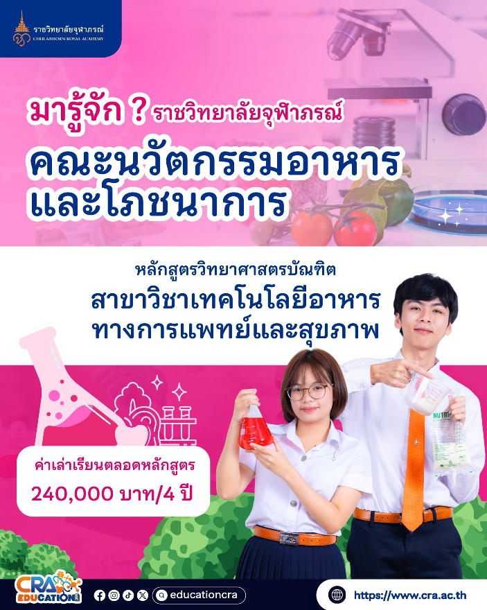 ติดตามข่าวสารการศึกษาราชวิทยาลัยจุฬาภรณ์ได้ทาง