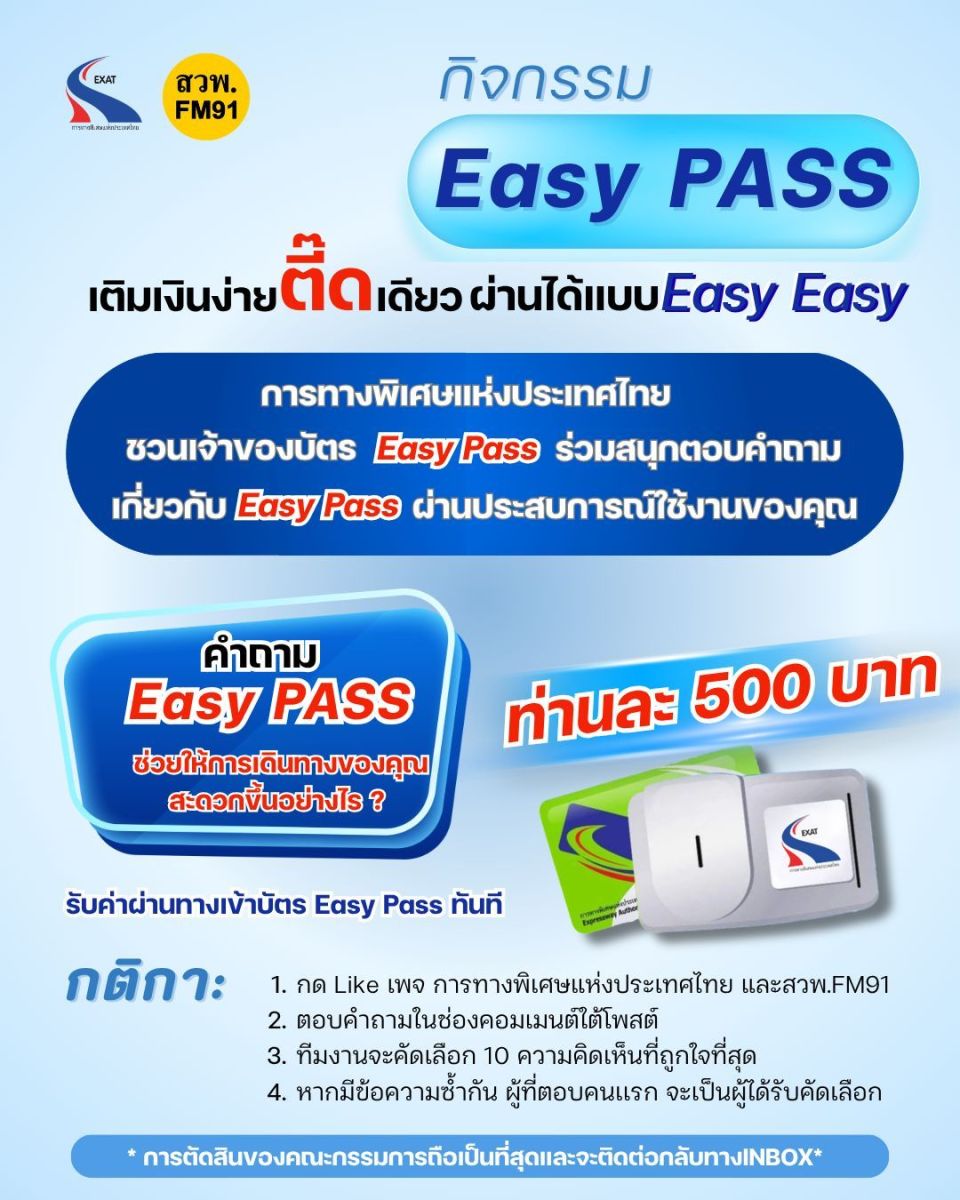 การทางพิเศษฯ ชวนเจ้าของบัตร Easy Pass ร่วมสนุกตอบคำถาม เกี่ยวกับ Easy Pass ผ่านประสบการณ์ใช้งานของคุณ