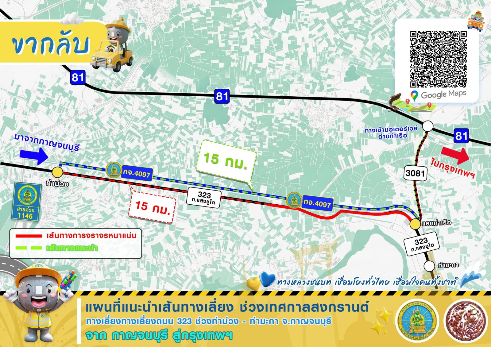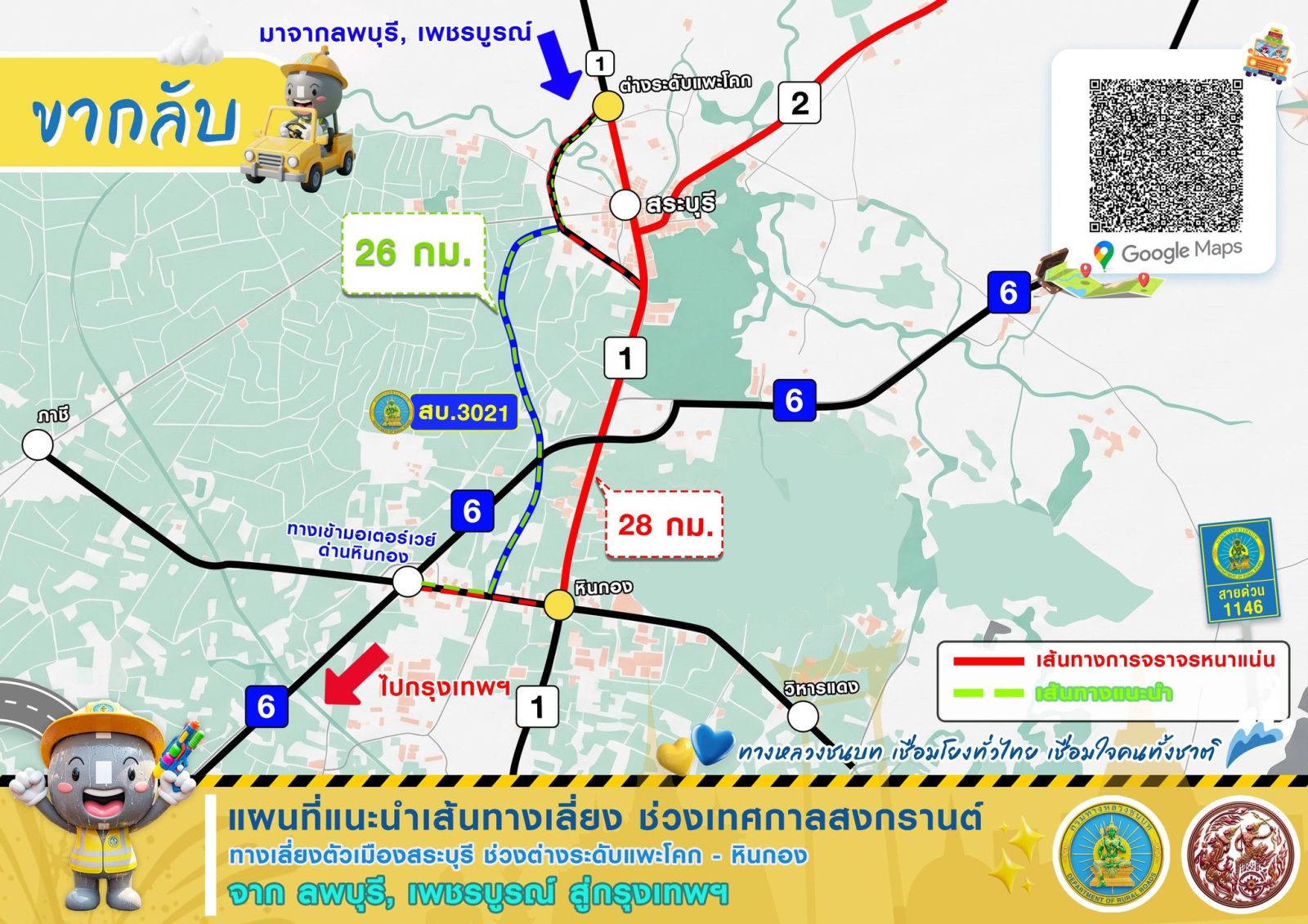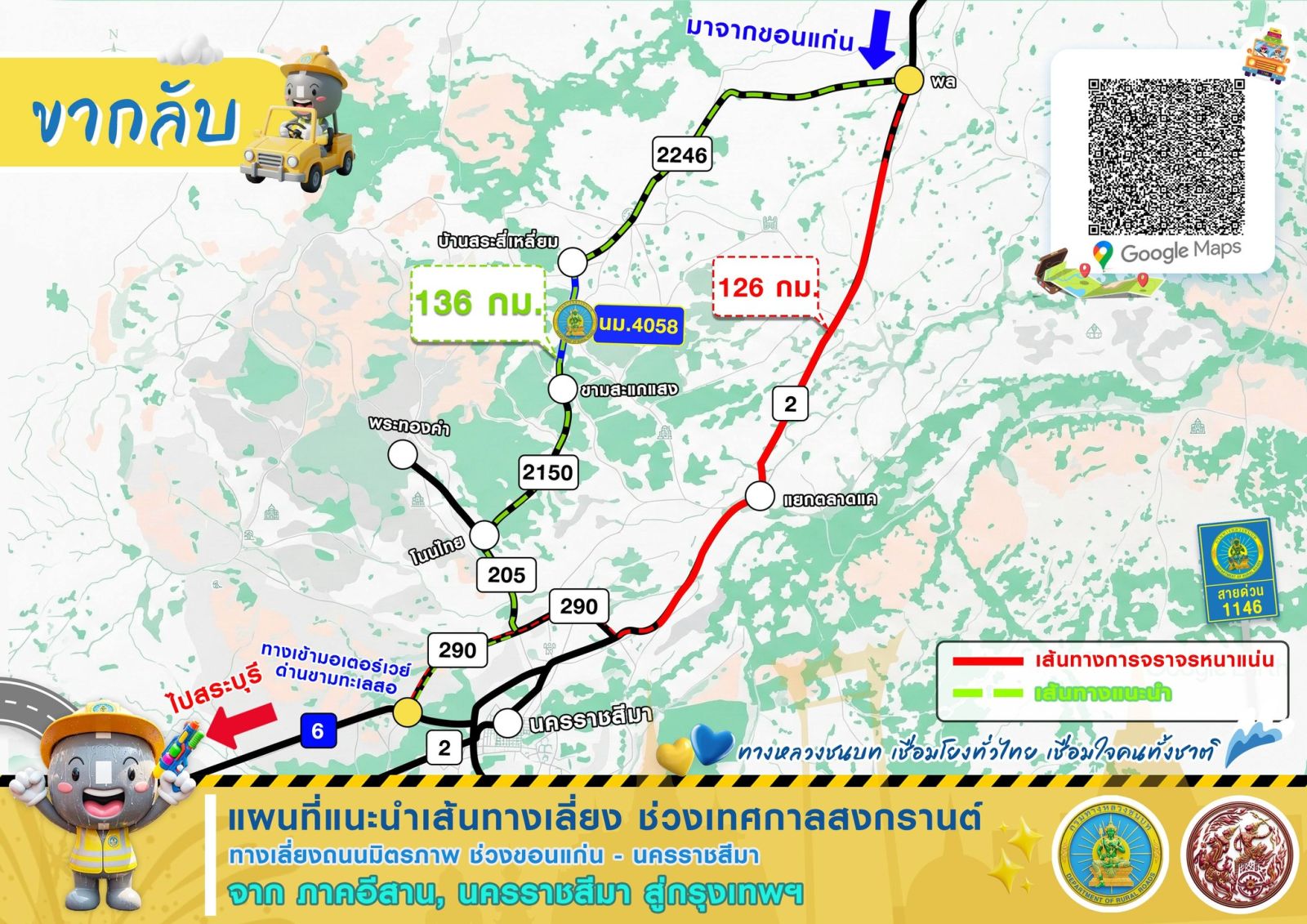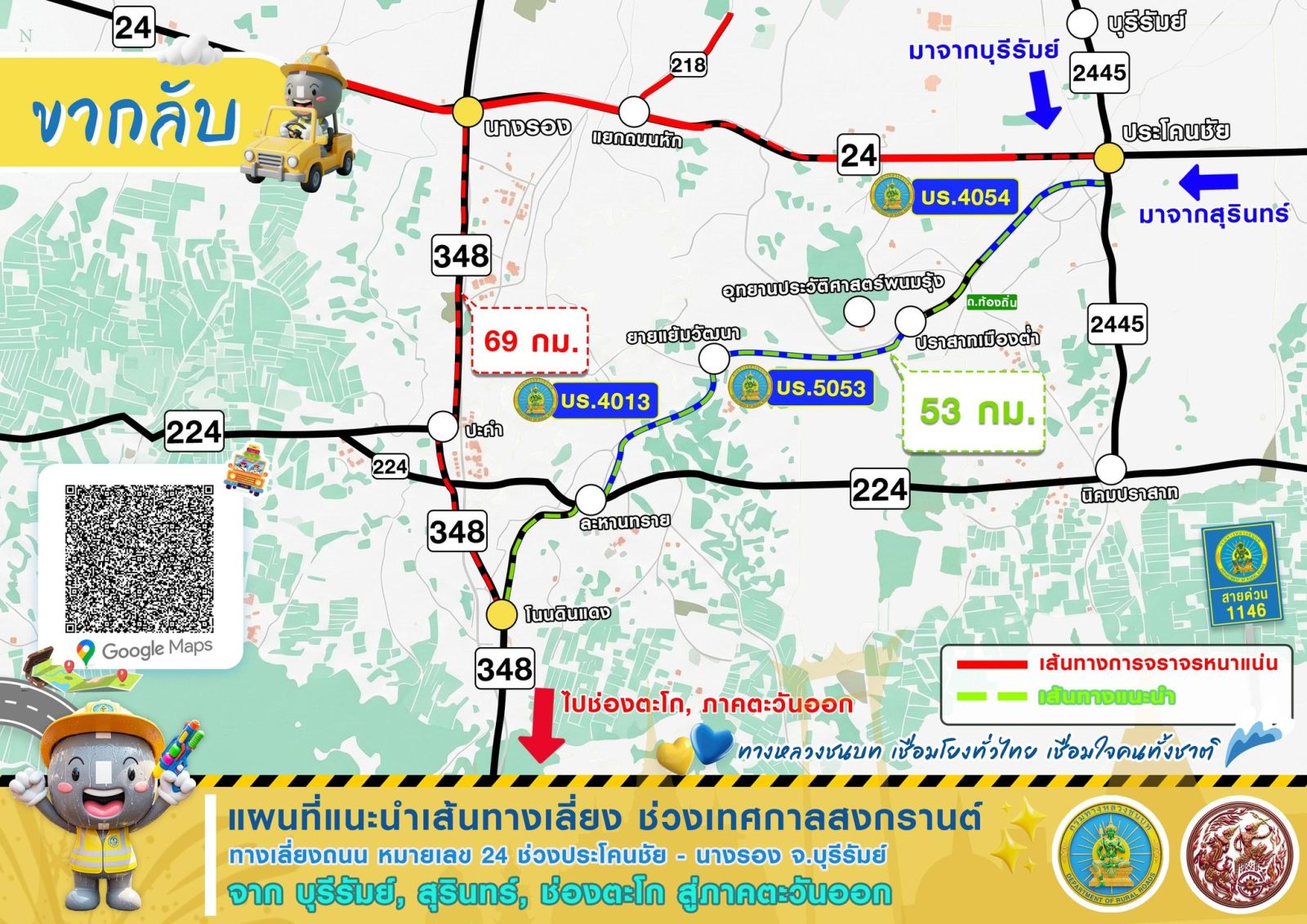 กรมทางหลวงชนบท ร่วมส่งประชาชนเดินทางกลับหลังจากเทศกาลสงกรานต์ 2569 พร้อมแนะนำ 4 เส้นทางเลี่ยงขากลับ ช่วยประหยัดพลังงานและให้ผู้ใช้ทางถึงที่หมายได้อย่างสะดวกรวดเร็วปลอดภัย