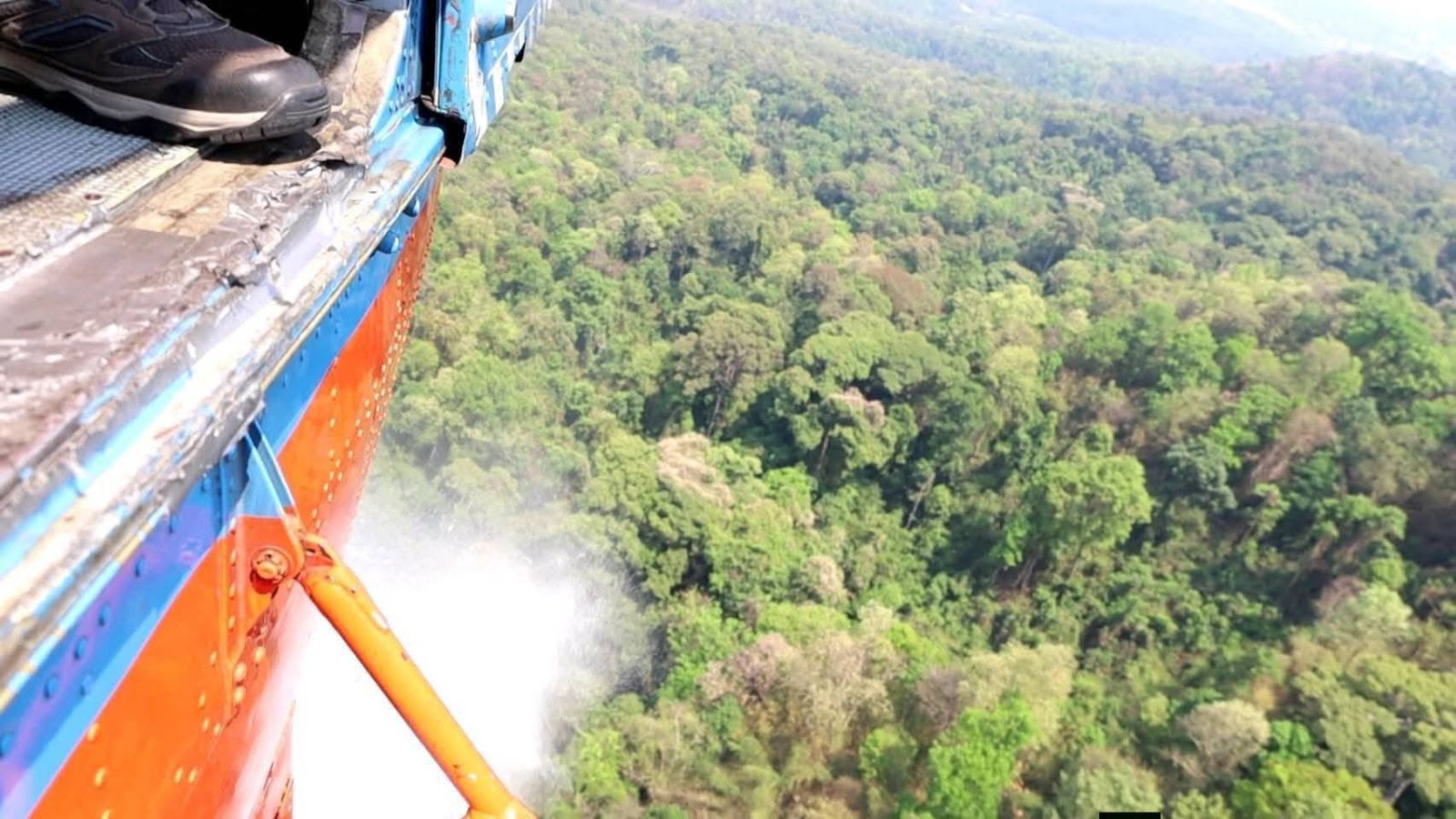 พร้อมกันนี้ ได้สนับสนุนภาคอากาศ โดยส่งเฮลิคอปเตอร์ของกระทรวงทรัพยากรธรรมชาติและสิ่งแวดล้อม บินโปรยน้ำลดความรุนแรงของไฟในพื้นที่สูง เพื่อควบคุมเพลิงให้อยู่ในวงจำกัดในช่วงเช้า ก่อนที่ในช่วงบ่ายจะส่งเฮลิคอปเตอร์รุ่น เคเอ 32 ของกรมป้องกันและบรรเทาสาธารณภัย เข้าร่วมปฏิบัติการโปรยน้ำดับไฟเพิ่มเติม เพื่อเสริมกำลังและป้องกันไม่ให้ไฟป่าลุกลามเข้าสู่พื้นที่สำคัญของจังหวัด