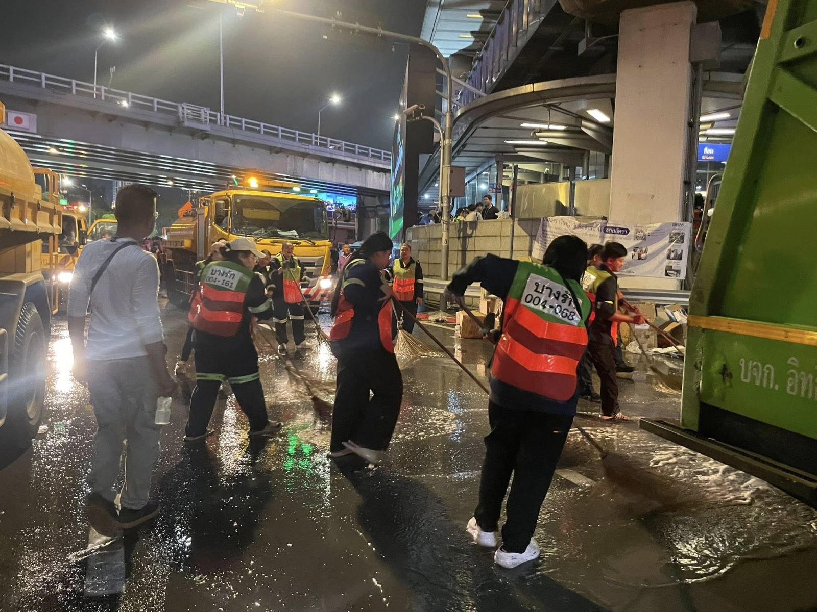 ในการนี้ นายศานนท์ หวังสร้างบุญ รองผู้ว่าราชการกรุงเทพมหานคร นายพรพรหม วิกิตเศรษฐ์ ที่ปรึกษาของผู้ว่าราชการกรุงเทพมหานคร นางพรพัน วัฒนสินธุ์ ผู้อำนวยการเขตบางรัก พร้อมด้วย คณะผู้บริหารเขต เจ้าหน้าที่เทศกิจ และเจ้าหน้าที่ตำรวจ ลงพื้นที่ดูแลความเรียบร้อย และอำนวยความสะดวกให้แก่ประชาชน โดยมี เจ้าหน้าที่ฝ่ายรักษาความสะอาดและสวนสาธารณะ เข้าเคลียร์พื้นที่เก็บขยะและทำความสะอาดอย่างแข็งขัน