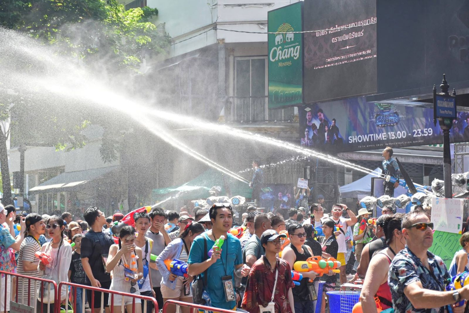 วันนี้ (14 เม.ย. 69) เวลา 14:00 น. บรรยากาศเทศกาลสงกรานต์ถนนสีลม 2569 “สงกรานต์สนุกฉ่ำใจ ห่มสไบไปสีลม (Songkran Silom Splash Out with Thai Culture 2026)” วันสุดท้าย มีประชาชนและนักท่องเที่ยวเดินทางมาเล่นน้ำสงกรานต์กันหนาแน่นตั้งแต่ช่วงบ่ายที่ผ่านมา พร้อมตื่นตากับขบวนพาเหรด Amazing Bangkok Songkran Parade 2026