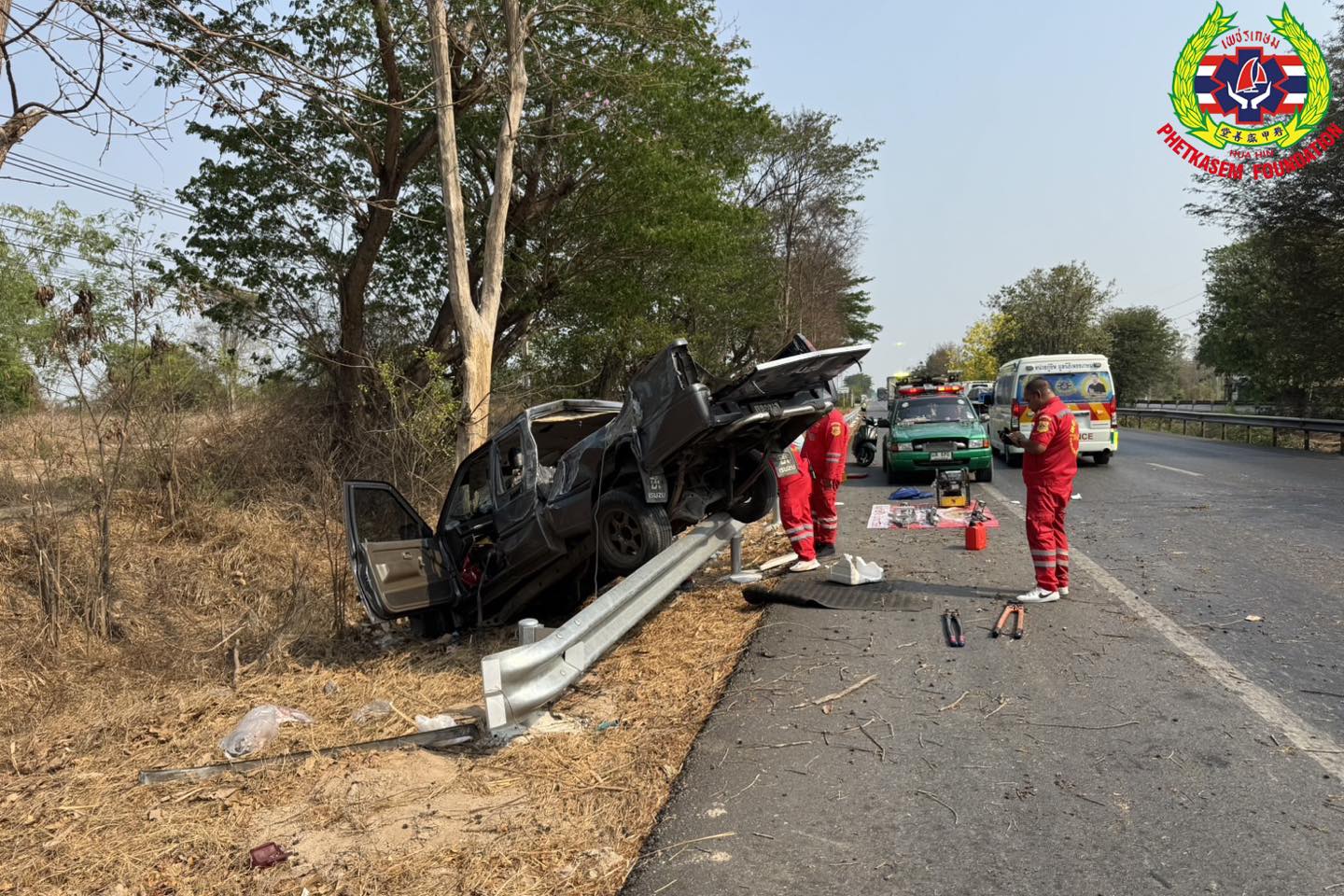 วันที่ 21 เมษายน 2569 เวลา 15.15 น. ศูนย์วิทยุรับแจ้งเหตุมูลนิธิเพชรเกษม หัวหิน ได้รับแจ้งมีอุบัติเหตุ รถกระบะเสียหลักชนต้นไม้ข้างทาง และมีผู้บาดเจ็บสาหัส ถนนเลี่ยงเมืองชะอำ ขาล่องใต้ กม.25+800 ในพื้นที่ ต.หินเหล็กไฟ อ.หัวหิน จ.ประจวบคีรีขันธ์