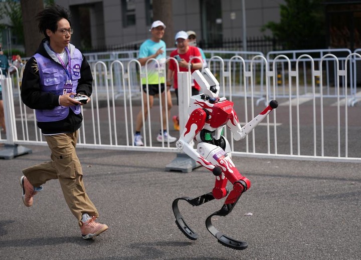 ปักกิ่ง, 23 เม.ย. (ซินหัว) -- หุ่นยนต์ฮิวแมนนอยด์กว่า 100 ตัวออกสตาร์ตร่วมการแข่งขันวิ่งฮาล์ฟมาราธอนหุ่นยนต์ฮิวแมนนอยด์ ในกรุงปักกิ่ง เมื่อวันอาทิตย์ (19 เม.ย.) ที่ผ่านมา แต่ความแปลกใหม่ของงานในปีนี้จางหายไปมากเมื่อเทียบกับเดือนเมษายน 2025 ซึ่งเป็นการแข่งวิ่งฮาล์ฟมาราธอนหุ่นยนต์ฮิวแมนนอยด์ประจำปีครั้งแรกที่ดึงดูดผู้ชมจำนวนมาก โดยครั้งนี้หุ่นยนต์เหล่านี้มีสิ่งที่ต้องพิสูจน์มากกว่าแค่การแสดงโชว์