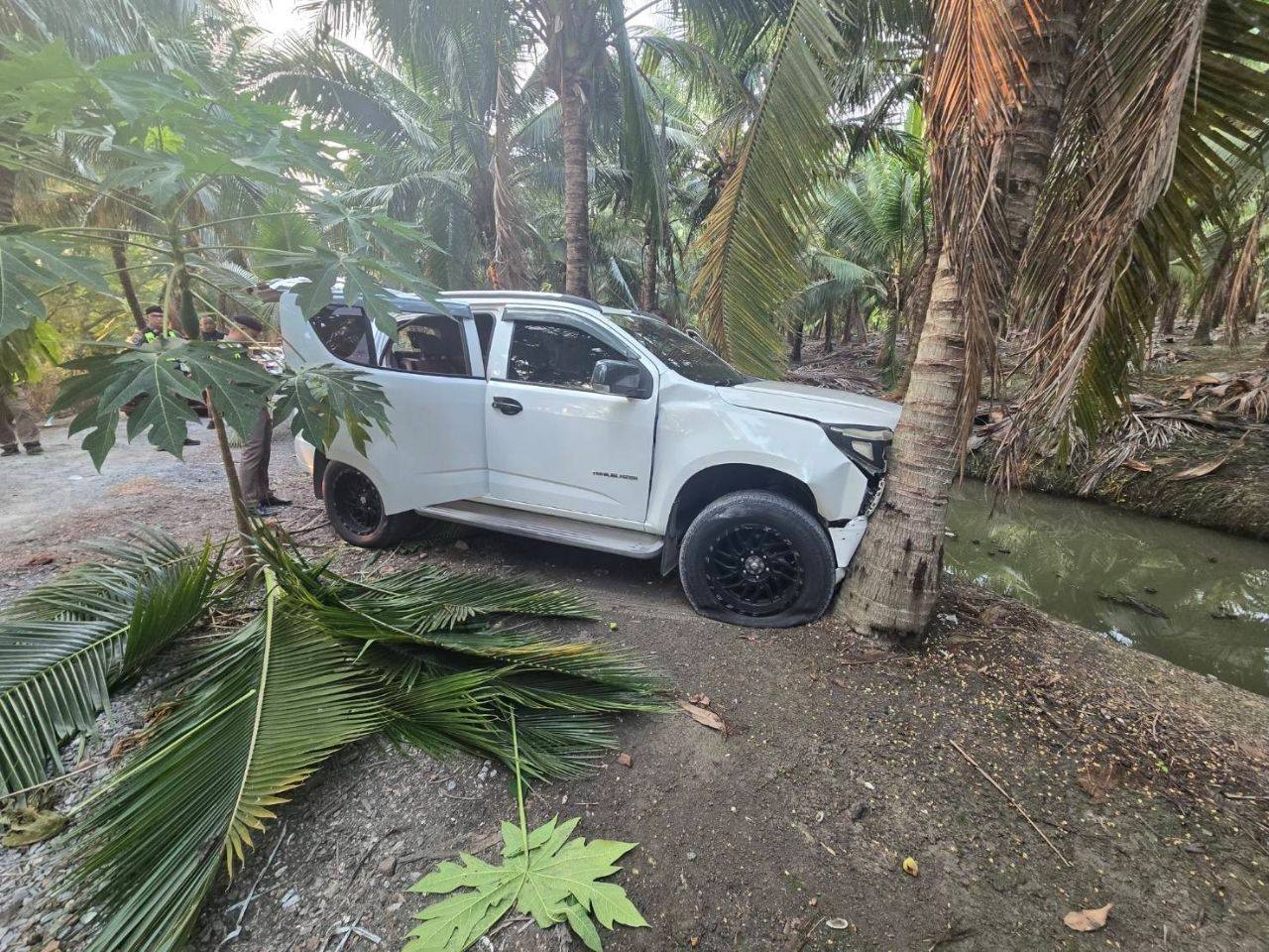 หลังพบพิรุธบรรทุกหนักและขาดต่อภาษี แต่คนขับกลับเร่งเครื่องหลบหนีอย่างไม่คิดชีวิต ขับขี่ด้วยความเร็วสูง ฝ่าสัญญาณไฟแดงต่อเนื่องถึง 3 แยก ก่อนควบคุมรถไม่อยู่ พุ่งขึ้นเกาะกลางถนนและชนต้นมะพร้าวอย่างแรง ในพื้นที่อำเภอบ้านแพ้ว จังหวัดสมุทรสาคร จากการสอบสวน คนขับ ให้การรับสารภาพว่า ได้รับว่าจ้างให้ไปรับแรงงานทั้งหมดจากบริเวณหลังวัดแห่งหนึ่งในจังหวัดกาญจนบุรี เพื่อนำไปส่งในพื้นที่แสมดำและจังหวัดชลบุรี