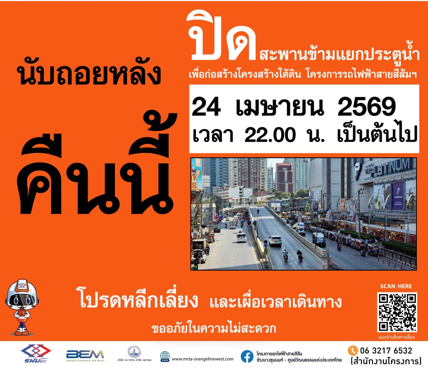 #นับถอยหลังคืนนี้ #เตรียมปิดสะพานข้ามแยกประตูน้ำ 24 เมษายน 2569 นี้ เพื่อก่อสร้างโครงสร้างใต้ดิน โครงการรถไฟฟ้าสายสีส้ม ช่วงบางขุนนนท์ - ศูนย์วัฒนธรรมแห่งประเทศไทย